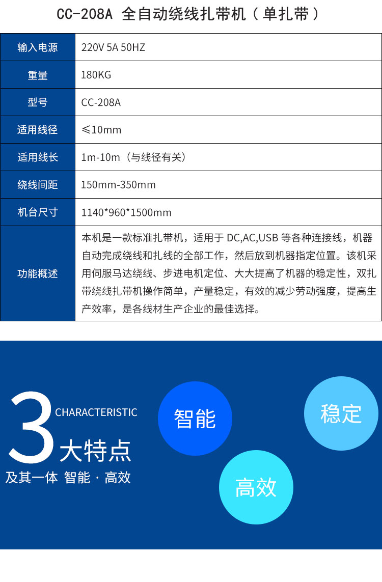 本機適用于DC、AC、USB等各種連接線,機器自動完成繞線和扎帶的全部工作。
